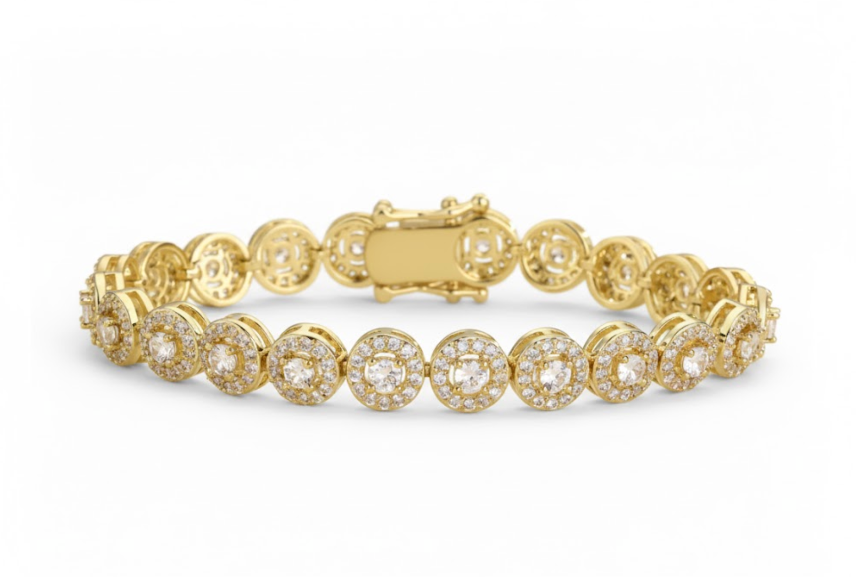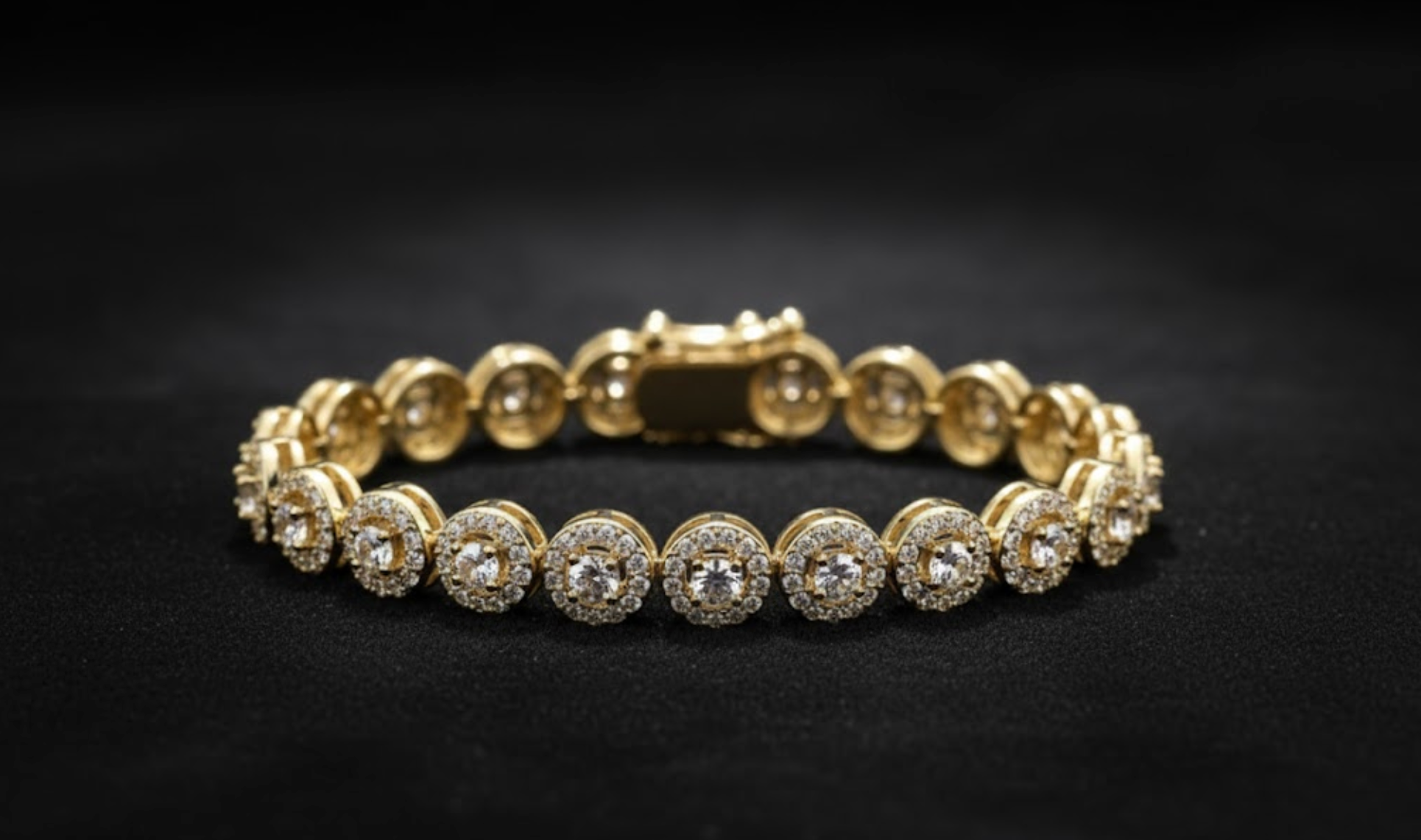 The Auream Array glimmers with continuous zircon rounds, flowing in a golden current of brilliance. Minimalist in form yet opulent in effect, this bracelet reflects light from every angle — a treasure meant to embody both daily confidence and elevated celebration.